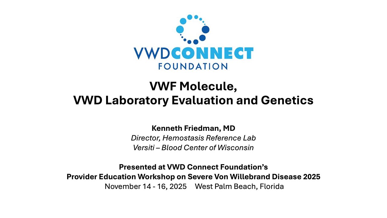 Presented at the VWD Connect Foundation 2025 Provider Education Workshop on Severe VWD